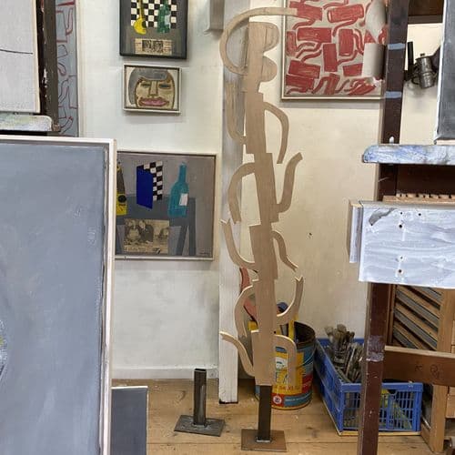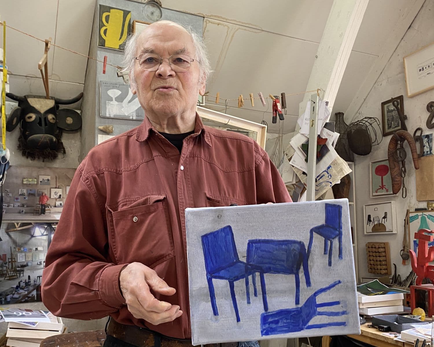 Mijn leraar Fred Sieger heeft me opgedragen naar Morandi te kijken toen ik 17 of 18 jaar was. Ik vond het maar een saaie klootzak, maar het werk heeft me totaal in beslaggenomen. Ik heb eens geprobeerd iets te schilderen wat geen voorwerp is. Zeg maar een kan zonder tuit en zonder oor. Gewoon een pure vorm. Ik wilde weten of dat dezelfde kracht had. Dat is gelukt, kijk maar, daar hangt het. Ik weet dat ik het kan, en sindsdien schilder ik weer kannen en tafels. Maar voor mij is dat totaal elke dag anders. Daar staat bijvoorbeeld een beeld. Ik heb geen idee welke kleur het moet worden. Ik wil het zelf ook weten, maar ik kom er nu nog niet uit.