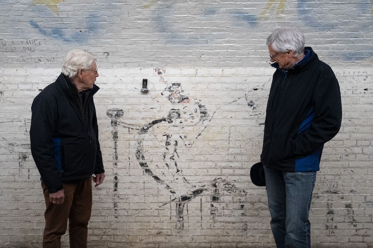Na de oorlog werden de tekeningen bedekt met witte kalk. Pas toen door vocht de kalk losliet, verschenen ze weer. Door het vocht bladderden de tekeningen af en dat ging steeds sneller. Frits en een andere vrijwilliger kwamen in actie. “We probeerden genoeg geld bij elkaar te krijgen om ze te behouden.”
