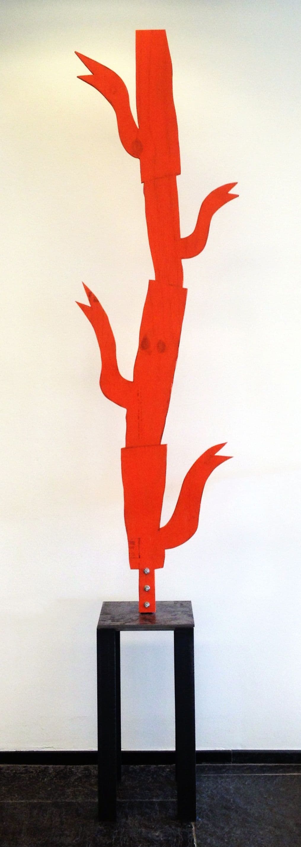 Lex: Ja ik ben eigenlijk helemaal flabbergasted van die titel, want dat had ik er zelf niet in gezien. Ik zie gewoon een stapel met koffiepotten, vaak uitgescholden als theepot, maar dat zijn ze helemaal niet. Het zijn koffiepotten, koffiekannen eigenlijk. In het prachtige oranje zo gestapeld op een bijzondere manier in het voorbijgaan kom je er dan langs. Terwijl het eigenlijk een stuk hout is dat op een bijzondere manier is uitgezaagd. Daar word ik wel heel blij van. Zo’n mooie oranje token. Echt even een klein vreugdedansje wat dan in je ziel omhoog komt als je daar langskomt. Dat betekent het voor mij.