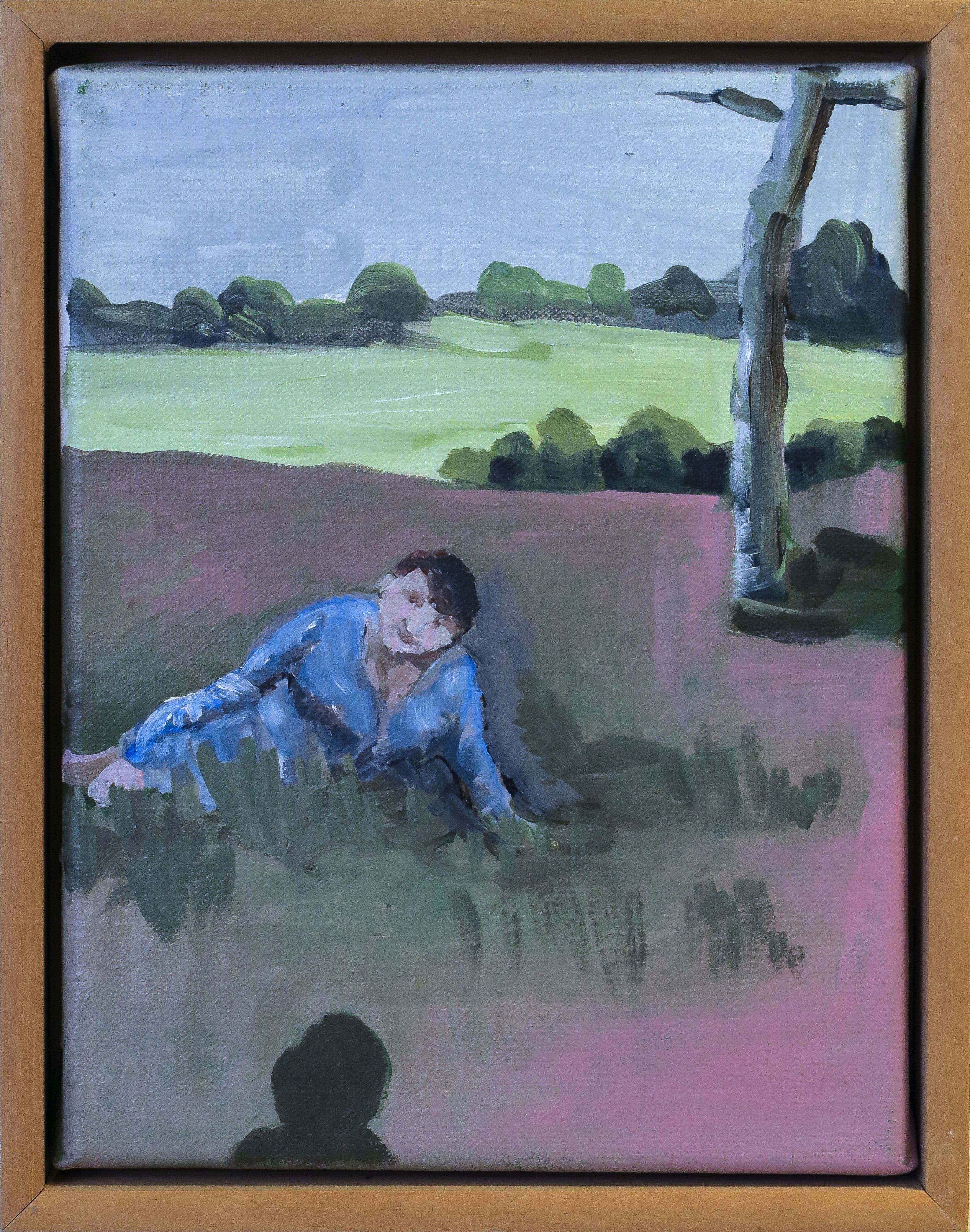 Gabrielle: We zien een mevrouw die volgens mij in de hei zit. Soort in een rustig houding een berkje op de achtergrond en op de voorgrond zie je een schaduw. Ik weet wat de titel is van het schilderij. Dus de schaduw stelt de fotograaf voor.